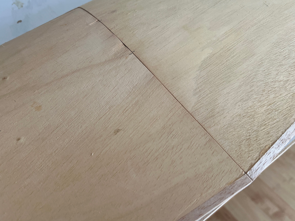 On a perfectly flat building board (I use a cheap door from a DIY store) set the wings up to be joined. The tips will be parallel, if there is any error inthe panels it will be apparent at the roots. I accept about 3mm as a max discrepancy here.